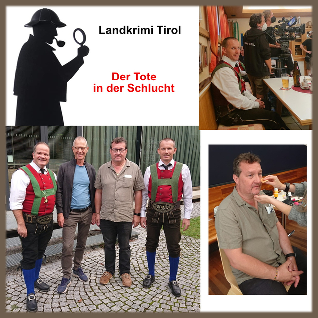 Ein ganz besonderes Erlebnis hatten kürzlich einige Mühlauer Sänger. Sie waren als "singende Komparsen" beim aktuellen Dreh des Landkrimi Tirol als Mitwirkende mit dabei. So konnten die Sänger, unterstützt von einem der Darsteller, das wunderschöne Herbstlied "Der Summer is ausi" in einer spannenden Szene in einem Vereinsheim zu Gehör bringen. Natürlich mussten sie nach dem Singen auch weiterhin als Komparsen anwesend sein und konnten so einen kleinen Eindruck von der Welt des Films und des Fernsehens schnuppern. |
