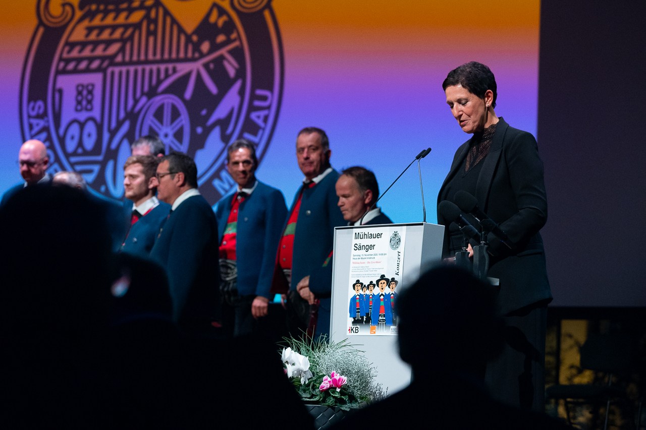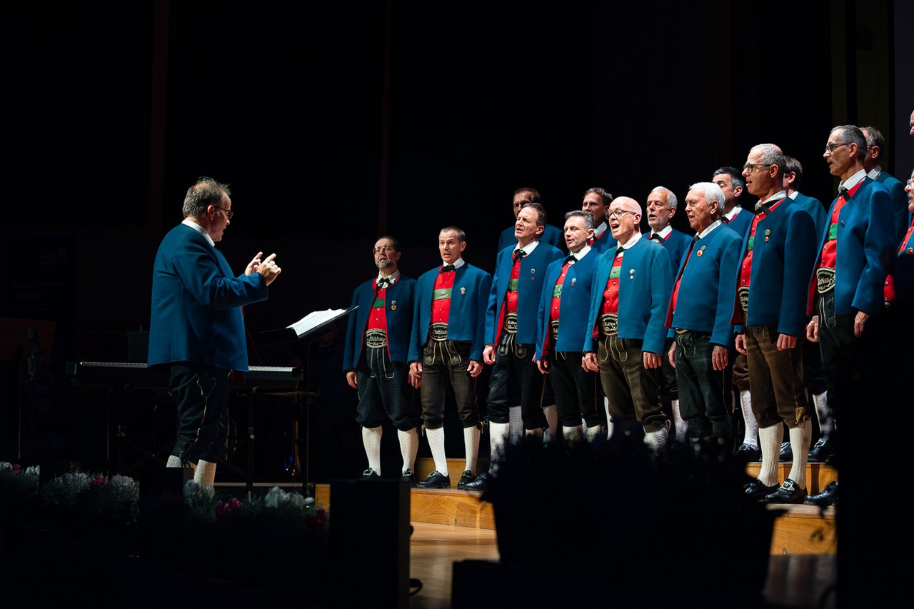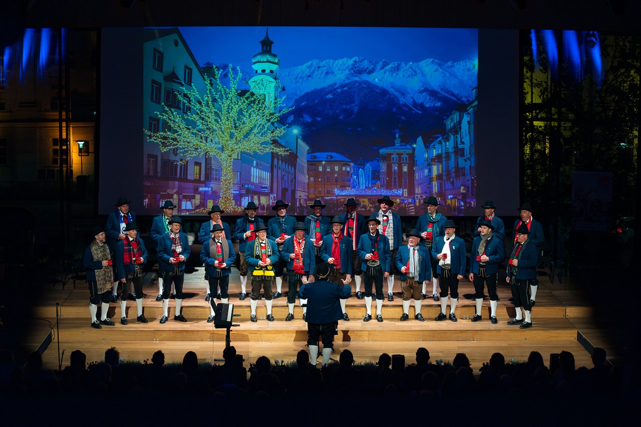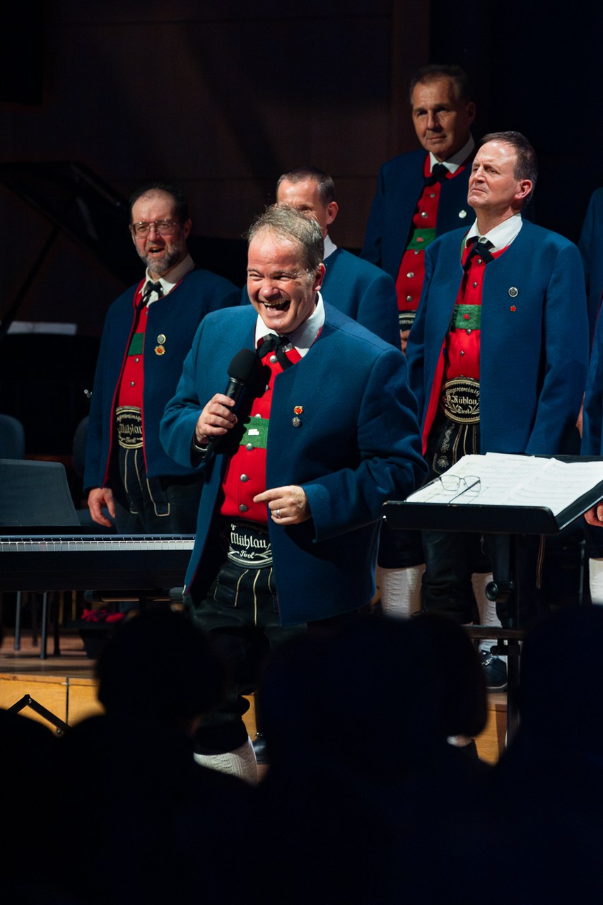 „Vor wenigen Stunden hat der Christkindlmarkt in Innsbruck eröffnet, und wir schalten gleich zu unserem Außenreporter in die Altstadt.“ So topaktuell präsentiert ORF-Moderatorin Waltraud Kiechl die „News“ der Mühlauer Sänger. Und die liefern von der „Außenstelle“ auf der Bühne des Großen Saals erste adventliche Weisen ins Haus der Musik.