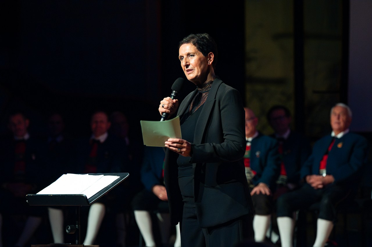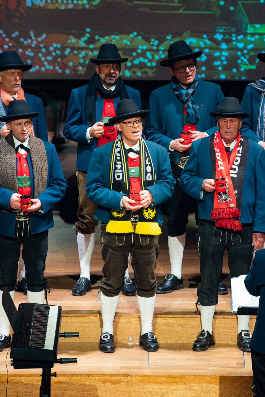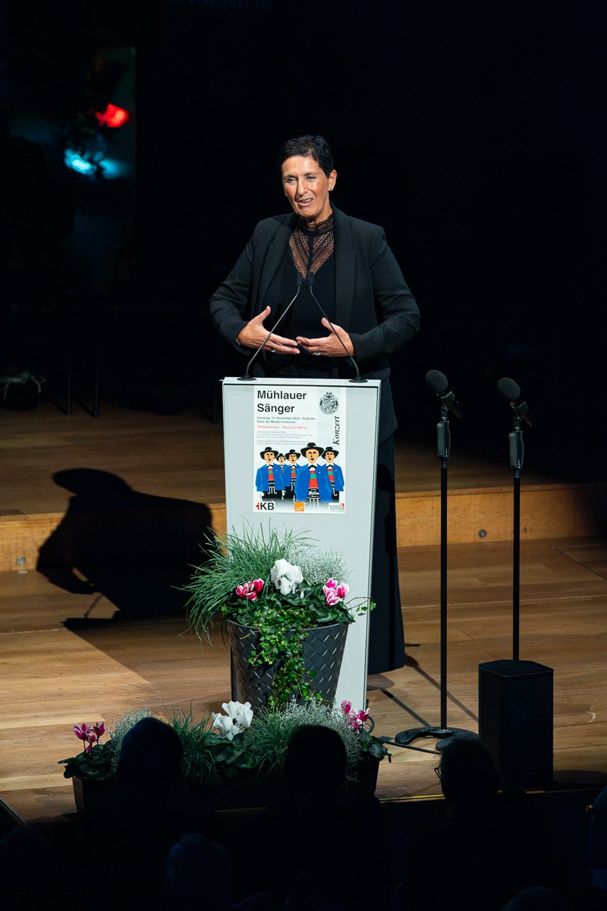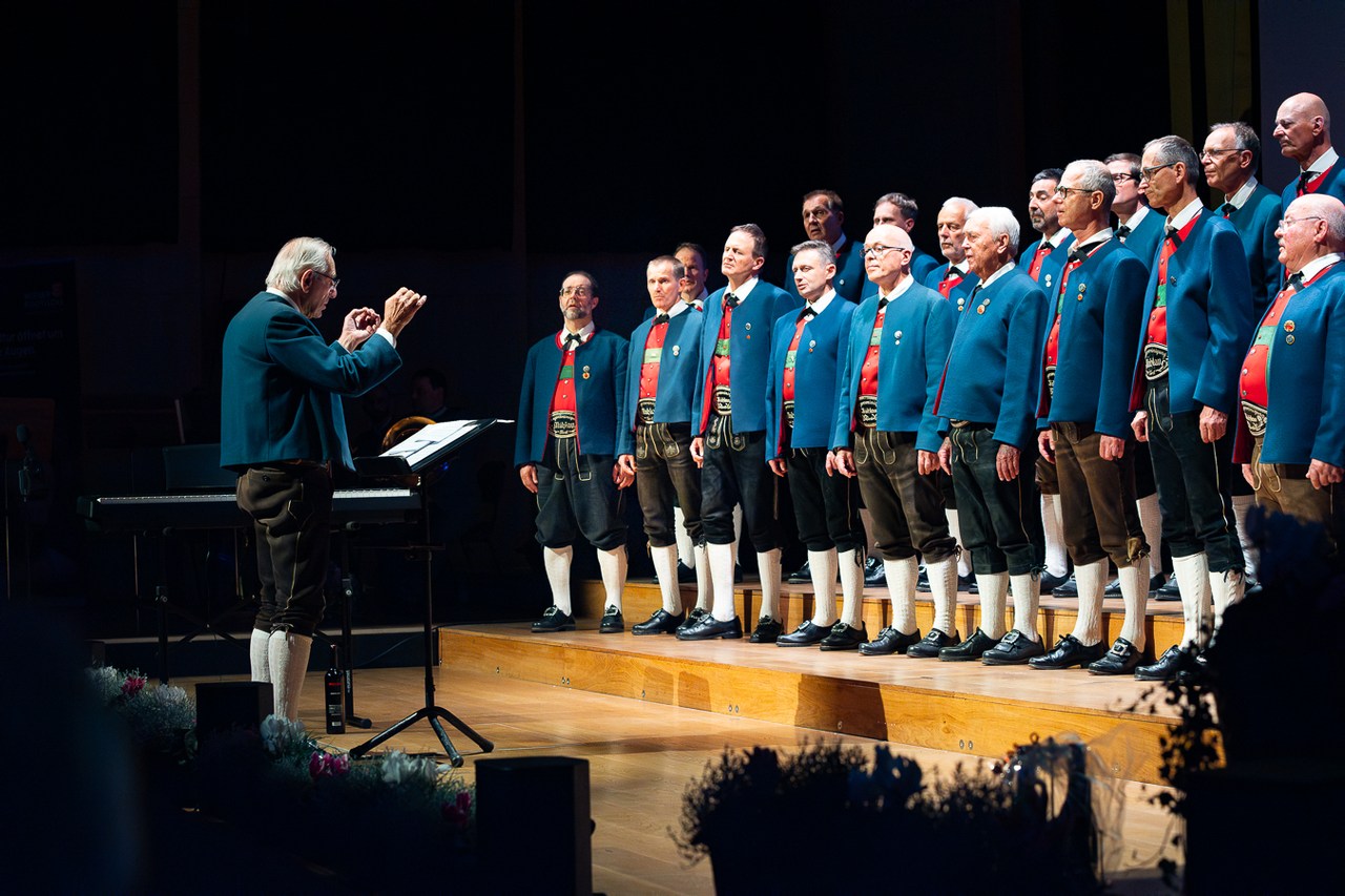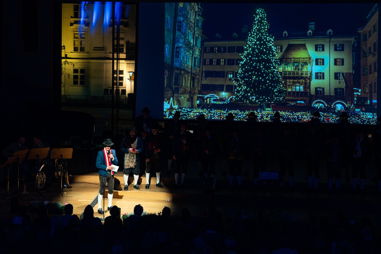 „Vor wenigen Stunden hat der Christkindlmarkt in Innsbruck eröffnet, und wir schalten gleich zu unserem Außenreporter in die Altstadt.“ So topaktuell präsentiert ORF-Moderatorin Waltraud Kiechl die „News“ der Mühlauer Sänger. Und die liefern von der „Außenstelle“ auf der Bühne des Großen Saals erste adventliche Weisen ins Haus der Musik.