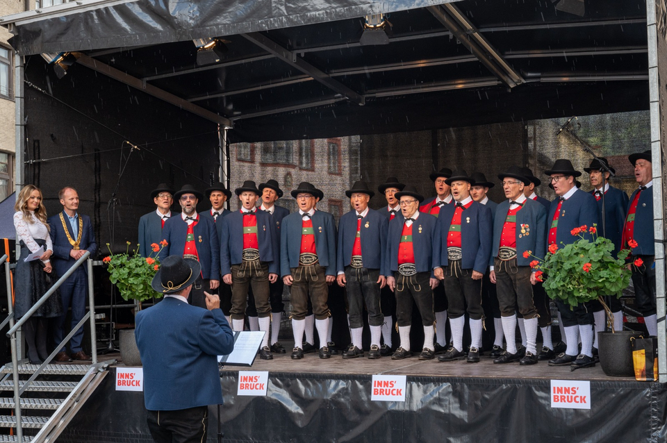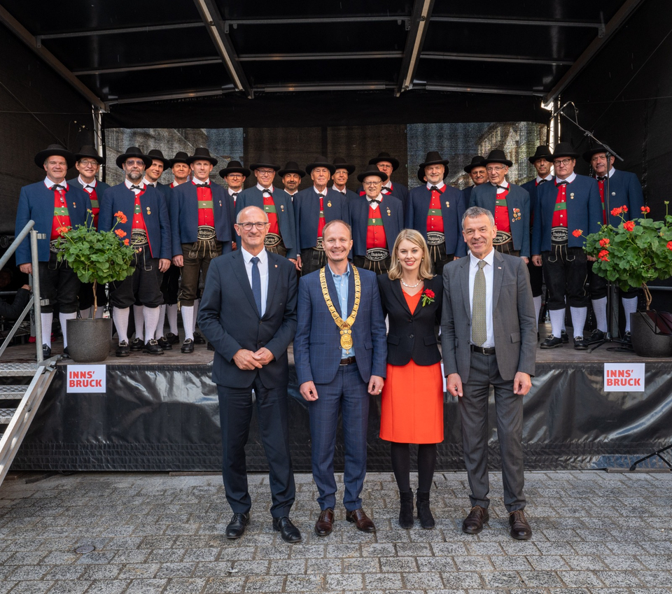 Mit unserem Lied vom "Warmen Wind", das den Innsbrucker Föhn beschreibt, haben wir den besonderen Anlass mit einem kleinen Augenzwinkern chormusikalisch begleitet. Es hat uns außerordentlich gefreut, dass wir von Landeshauptmann Anton Mattle, dem 1. Vizebürgermeister Georg Willi und der 2. Vizebürgermeisterin Elli Mayr nochmals zu unserem Erfolg beim Cornwall International Male Choral Festival gratuliert bekommen haben. Und auch unser Chorleiter Thorsten Weber hat sich über den Dank und die Glückwünsche vom neuen Bürgermeister Johannes Anzengruber sehr gefreut.